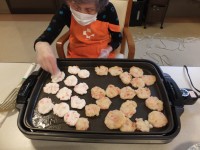 3月6日月曜日、今回はだいこん餅を作りました。大根をすりおろして、小麦粉と良く混ぜ生地作りを行ないました。ホットプレートで少し焦げ目が付く位焼いて完成です。さっぱりとした味で触感も良くシンプルではありますが美味しかったです。次回は3月13日です。メニューは楽しみにして下さい。