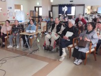 3月9日木曜日、音楽療法の日です。春の陽気になりつつもまだ寒い日もあり体調管理には気を付けて下さい。3月のテーマとして春よ来い、春が来た、高校三年生、荒城に月、蛍の光、仰げば尊しを音楽に合わせて歌いました。楽器ではトーンチャイムやシンバルを持って演奏に合わせ歌いました。次回はH29年3/23(木)です。