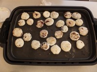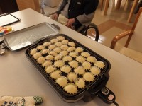 1月16日月曜日、今回は焼きモチを作りました。具材では小麦粉に少量の餅・あんこです。餅を刻んで電子レンジで柔らかくして小麦粉(水を入れ)と良く混ぜ生地を作り餡を入れ焼きます。焦げつかないように何回も裏返して焼きました。少し焦げついた程合いで完成です。もちもちして美味しかったと伺いました。今回も大変好評でありました。次回は1月23日です。メニューは楽しみにして下さい。