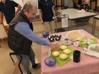 12月5日月曜日、今回は『マヒィン』を焼きました。具材では①サツマイモ②チョコレートを入れました。サツマイモの皮をむき包丁で切りました。カップに具材を入れた後にホットケーキミックスを注入した後にオーブンで焼きました。完成では大変上手く出来きたと満足されています。おやつでは大変美味しかったと毎回好評であります。次回は何かな~ また楽しみです。