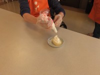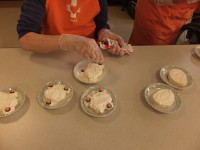 10月29日土曜日皆さんで「誕生会のケーキ」を作りました。クリームを塗るのに苦戦しましたが、役割分担を行ない皆さんで飾り付けをしていただき、かわいいケーキが出来上がりました。