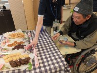 11月9日水曜日、毎週水曜日はおやつをバイキング式に変えました。食べたい物を選んで召し上がって頂きます。①ミニマドレーヌ(ココア・バター)②バタークッキー ③黒糖かりんとうドーナツ ④ねじりあられ の種類を用意致しました。皆さんどれが良いか迷いながらも、食べたい物をいただけたと大変好評でありました。