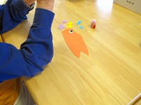 デイサービスです、こちらのお客様は折り紙で鯉を織っています、この小さな鯉が集まると壁画の鯉のぼりに!鯉の様に皆様今日も元気!元気!