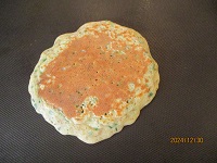 今日の手作りおやつは「ネギ焼き」を作りました。材料はお好み焼き、小ねぎ、卵、紅しょうがです。「今日は何を作るの?」と聞かれ「楽しみにしてください」と答え、焼き始めて香りがしてくると「美味しそうな物が出来そうね」と言われていました。「今日のおやつは美味しいよ」「紅しょうががきいていて美味しいよ」「おかわりある?」ととても好評でした。今年最後の手作りおやつでしたが皆さんに喜ばれるおやつが出来て良かったです。また来年も「美味しいね」と言って頂けるおやつを作っていこうと思います(^-^)