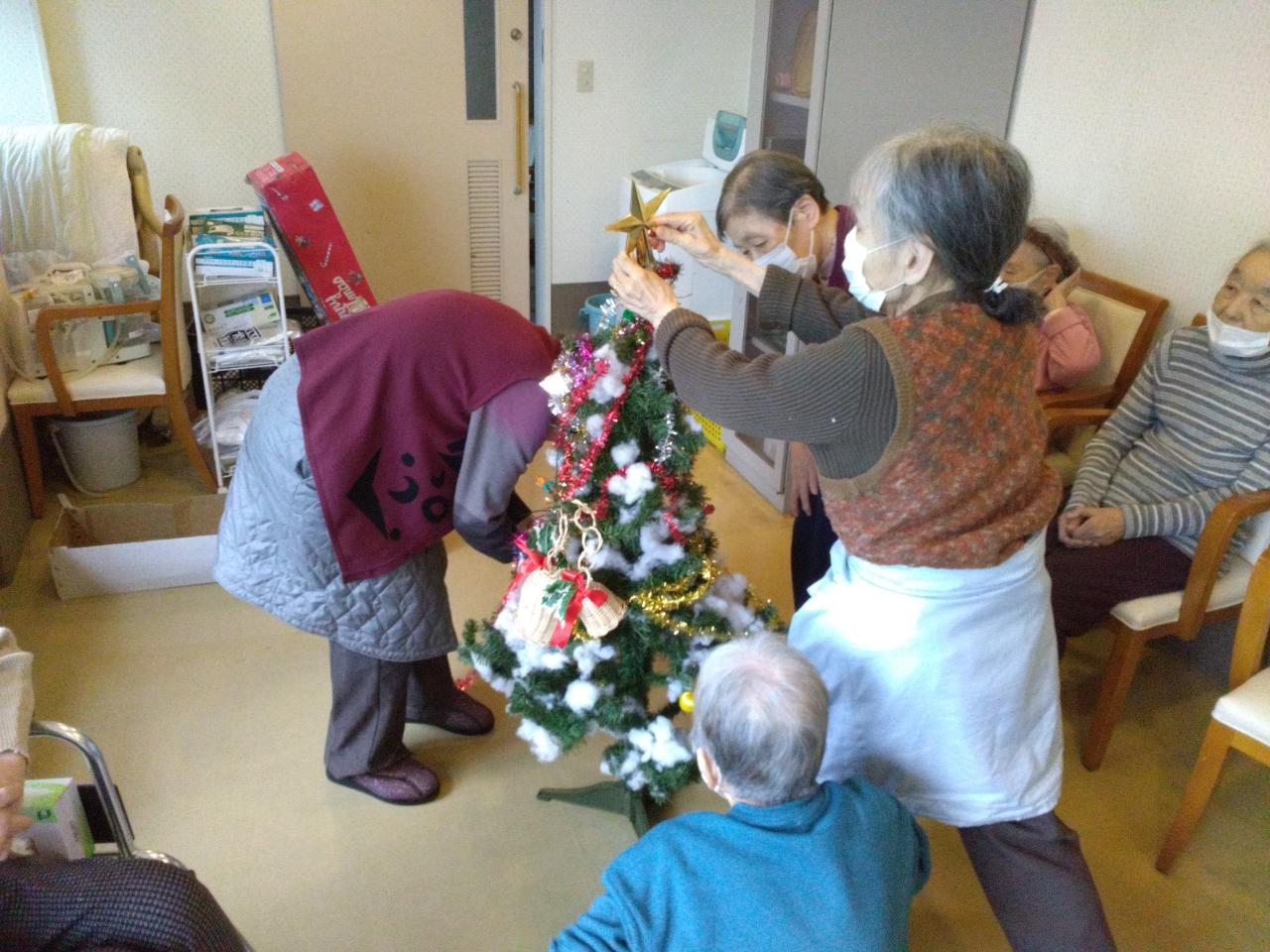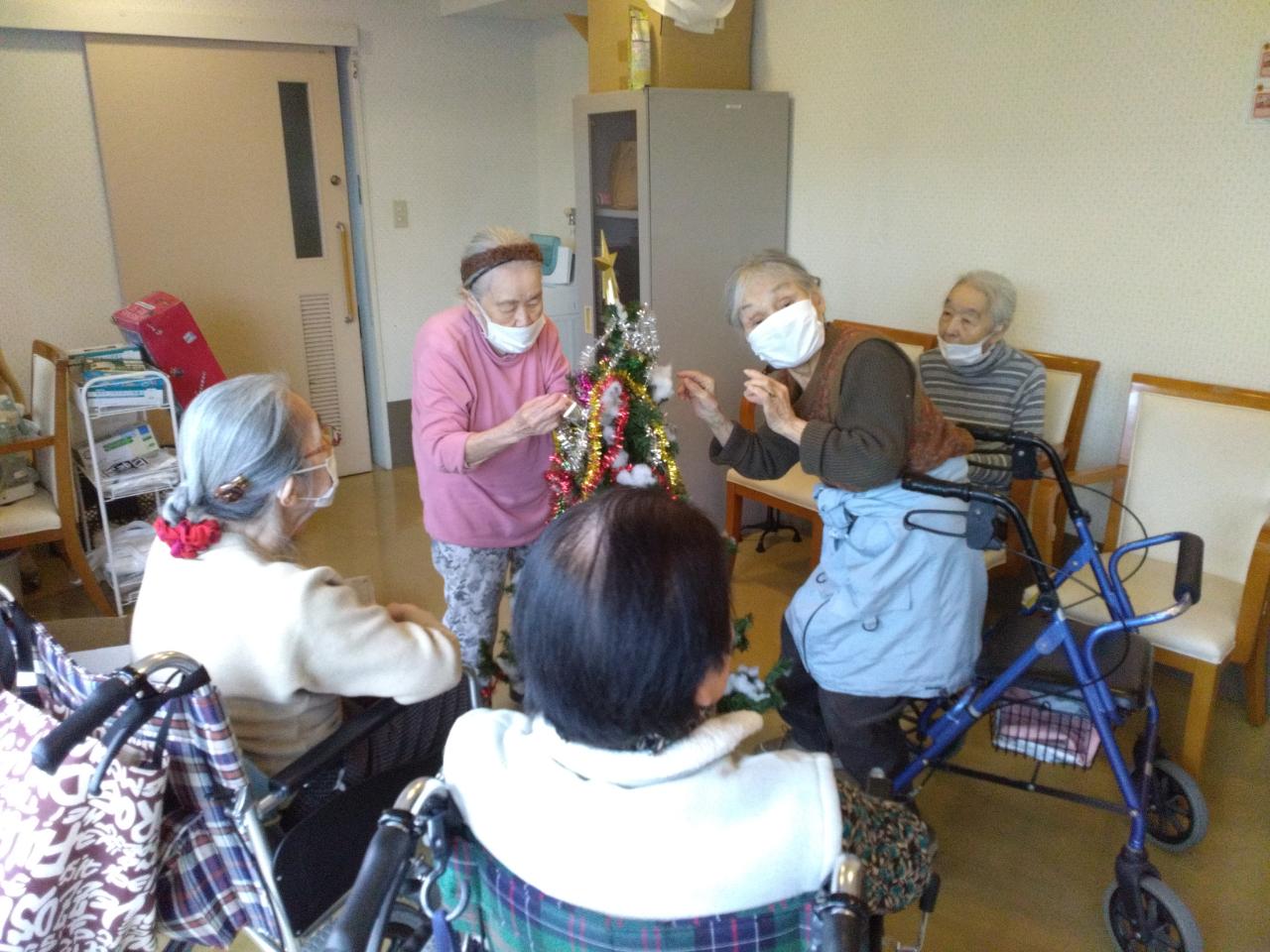 みなさんこんにちは、介護付き有料老人ホームグリ-ンライフ中央前橋です。昨日はレクリエ-ションの時間に入居者様も交えてクリスマスツリー🎄の飾りつけを行いました。写真の通り見事な出来栄えです。今年のプレゼントはなんでしょう?楽しみにしていてください(^^♪
