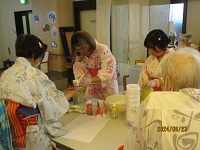 本日の午後、納涼祭を開催しました。着付けが得意な利用者がおられ、スタッフの浴衣の着付けをして頂きました。ありがとうございました。納涼祭ではスイカ、かき氷、きゅうり棒、お好み焼き、フランクフルトなどを召し上がって頂きました。本日も非常に暑く、かき氷は一番人気でした。またヨーヨー釣りや射的なども皆さん楽しまれておりました。家族の為にとヨーヨーを何個か取って帰られた利用者様もおられました。今日は、お疲れ様でした。楽しんで頂けたでしょうか?まだまだ暑い日が続きますが体調に気を付けてこれからもお過ごし下さい(^-^)