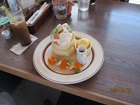今日の午後は外出レクでした。夏は暑い!涼しい所は何処か。。。と探し「カフェ」にしました。そこのカフェはパンケーキが有名なところで皆さんとても楽しみにされていました。移動している車の中でも、カフェに入っても何を食べましょうか、何を飲みましょうかと盛り上がっていました。チーズケーキやほうじ茶アイス、マンゴーパンケーキ、チョコバナナパンケーキとアイスコーヒーリンゴジュース、アイスティーと頼み現実から離れた楽しいゆっくりとした時間が過ぎました。皆さん「美味しかったわね」「また来たいわね」と話しながら帰って来ました。次回の外出レクも楽しみですね( *´艸`)