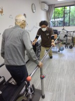 歩行訓練では見守りをしながら、独歩や杖、歩行器を使っての練習になります。