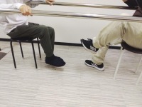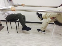 この日は、座位の姿勢を維持して、下肢股関節の可動域を確保するトレーニングです。