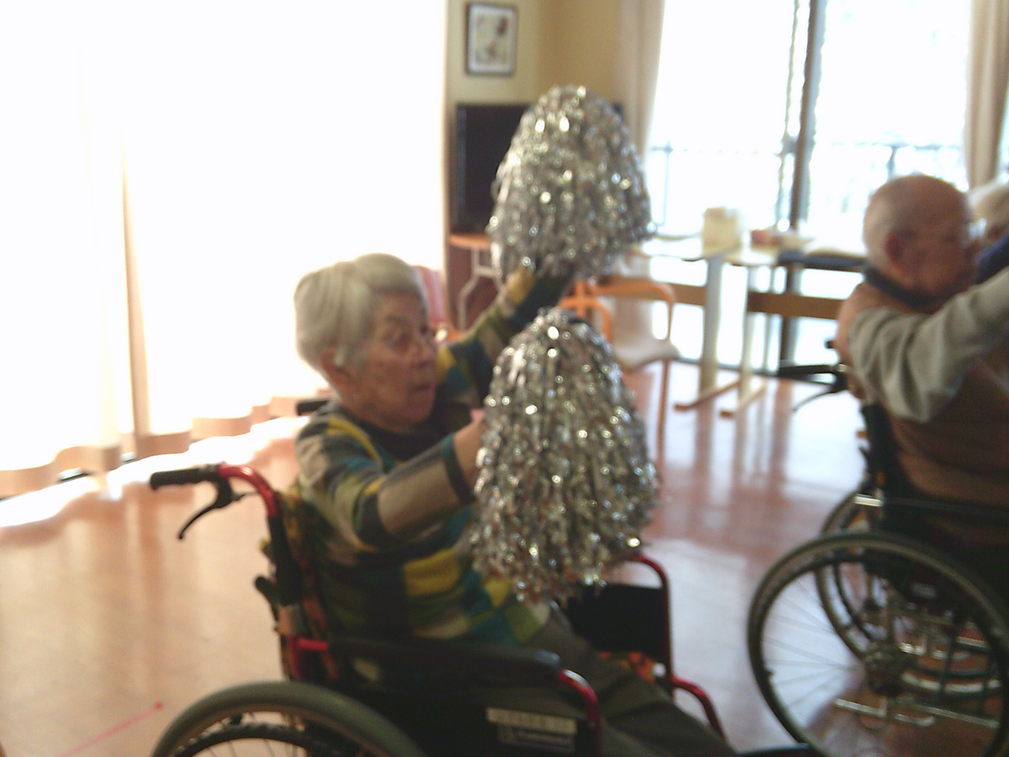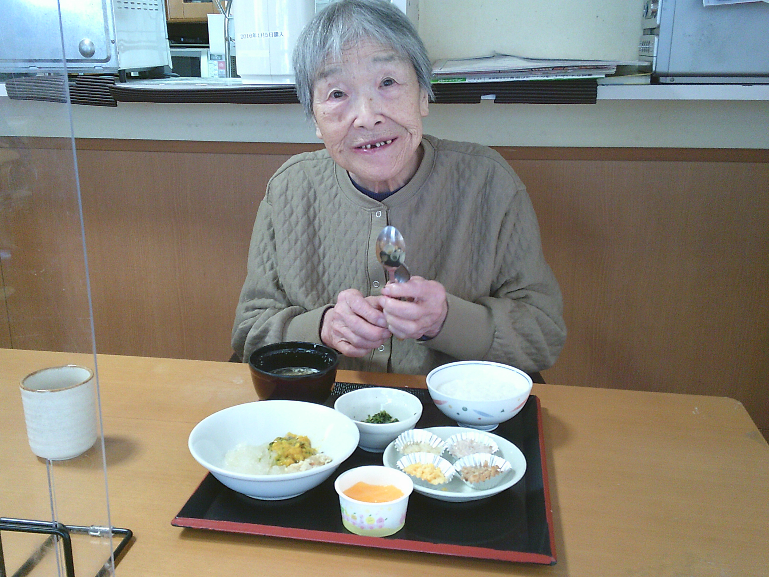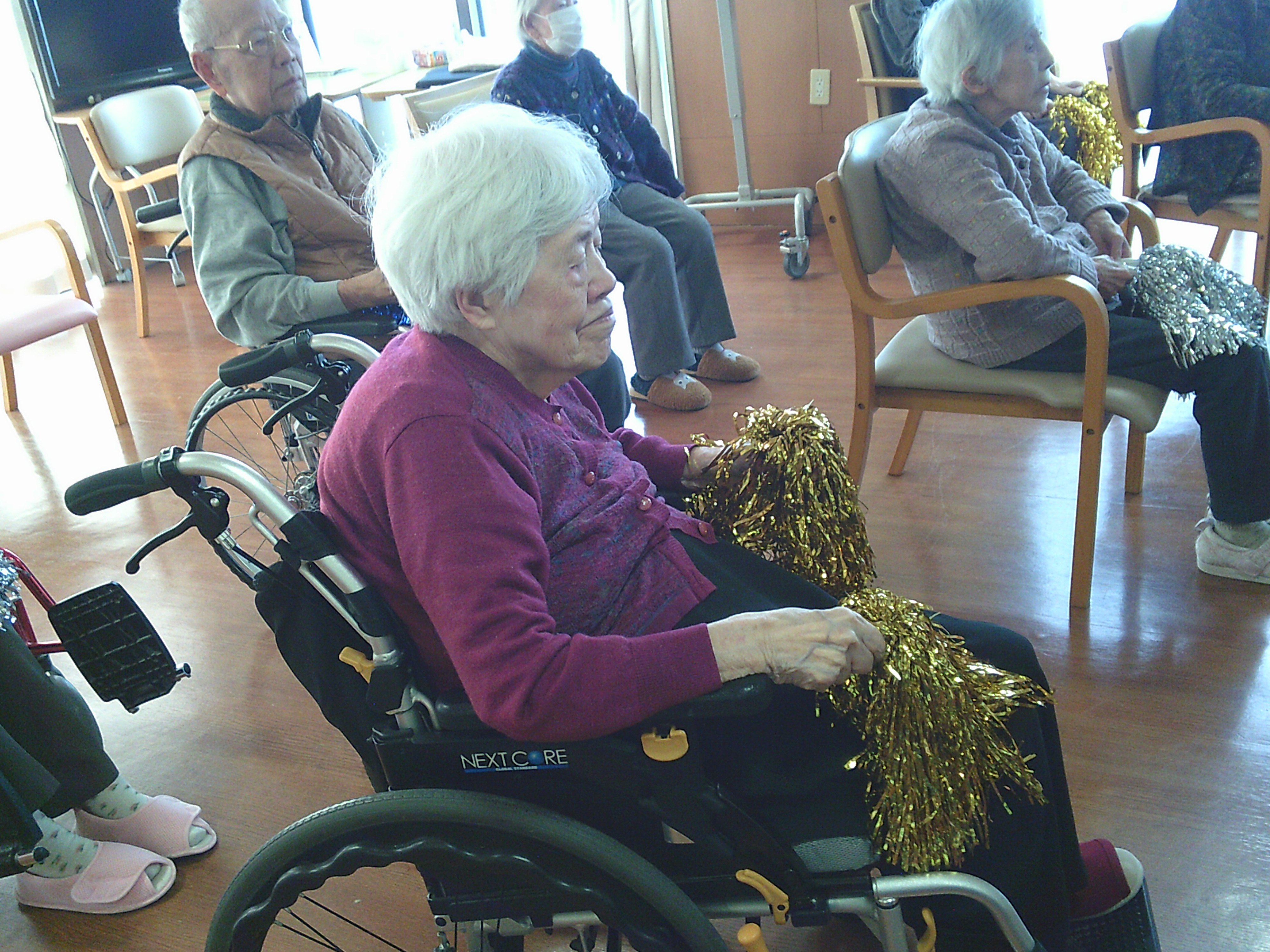 入居者様は暖かい施設の中で今日も頑張って体操していましたよ