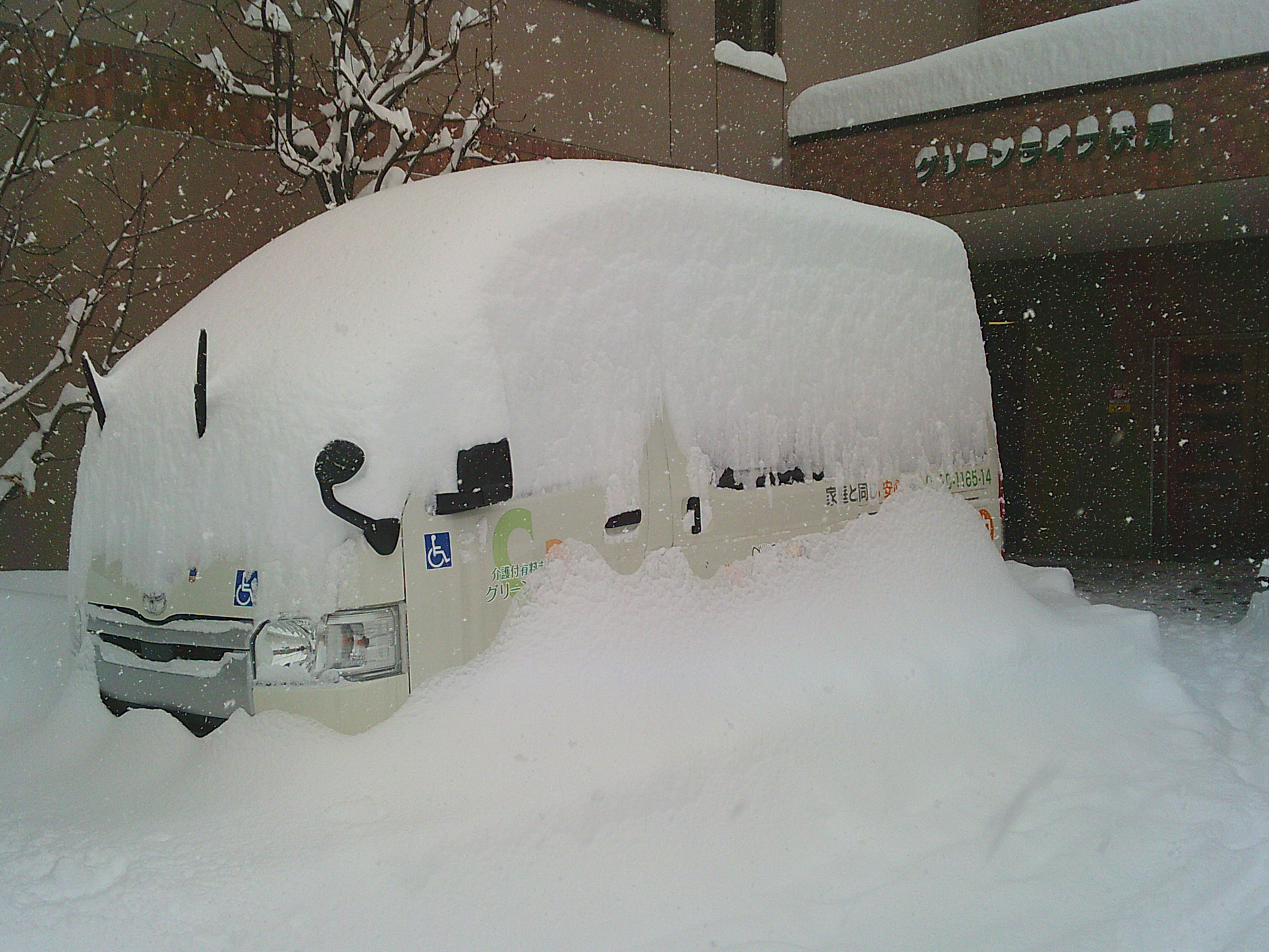 でも今日は札幌コンサートホールkitaraへ入居者様をお連れする約束をしているので、職員は必死に社有車を除雪・・しても、しても、キリがなーい!!