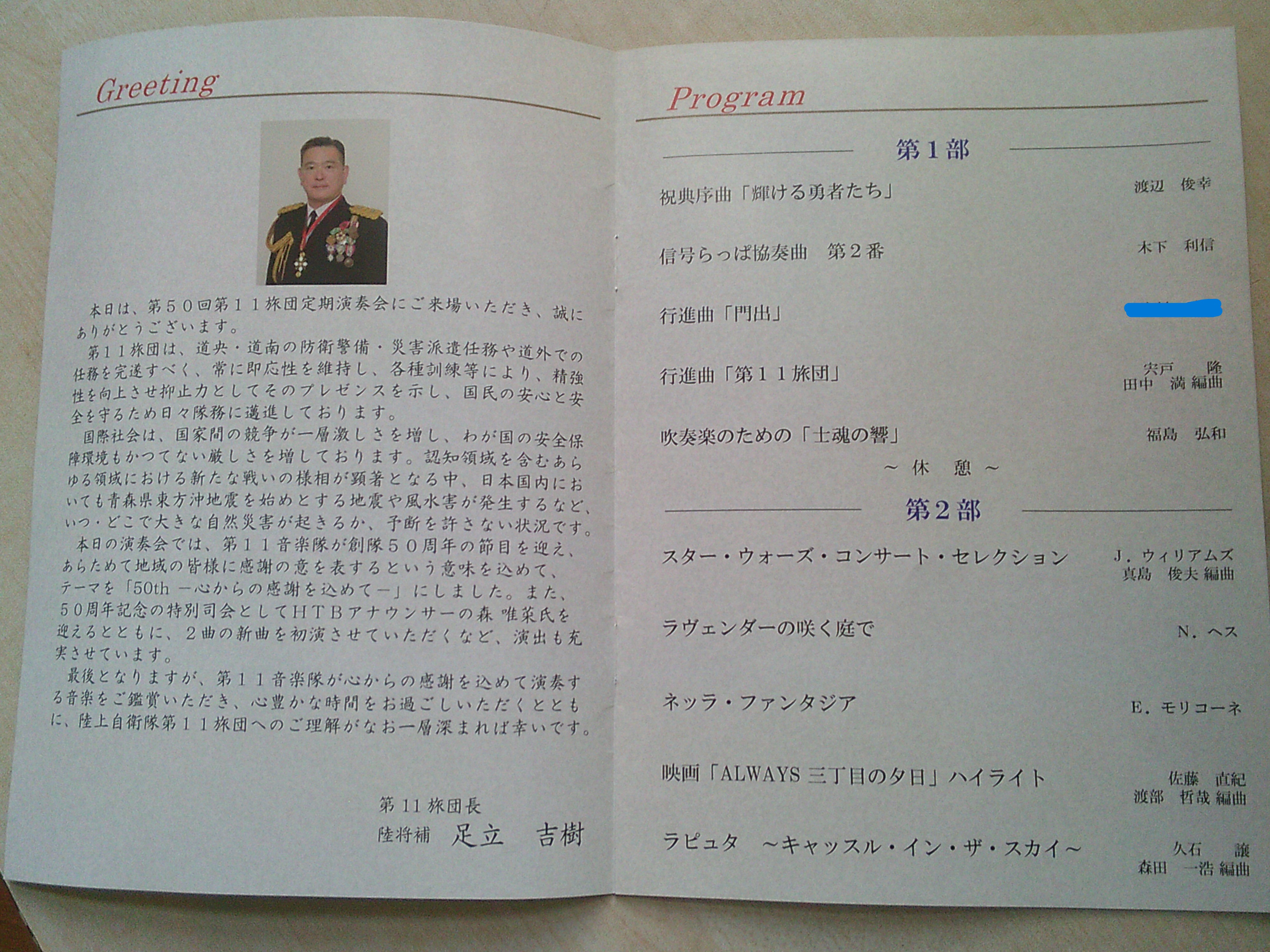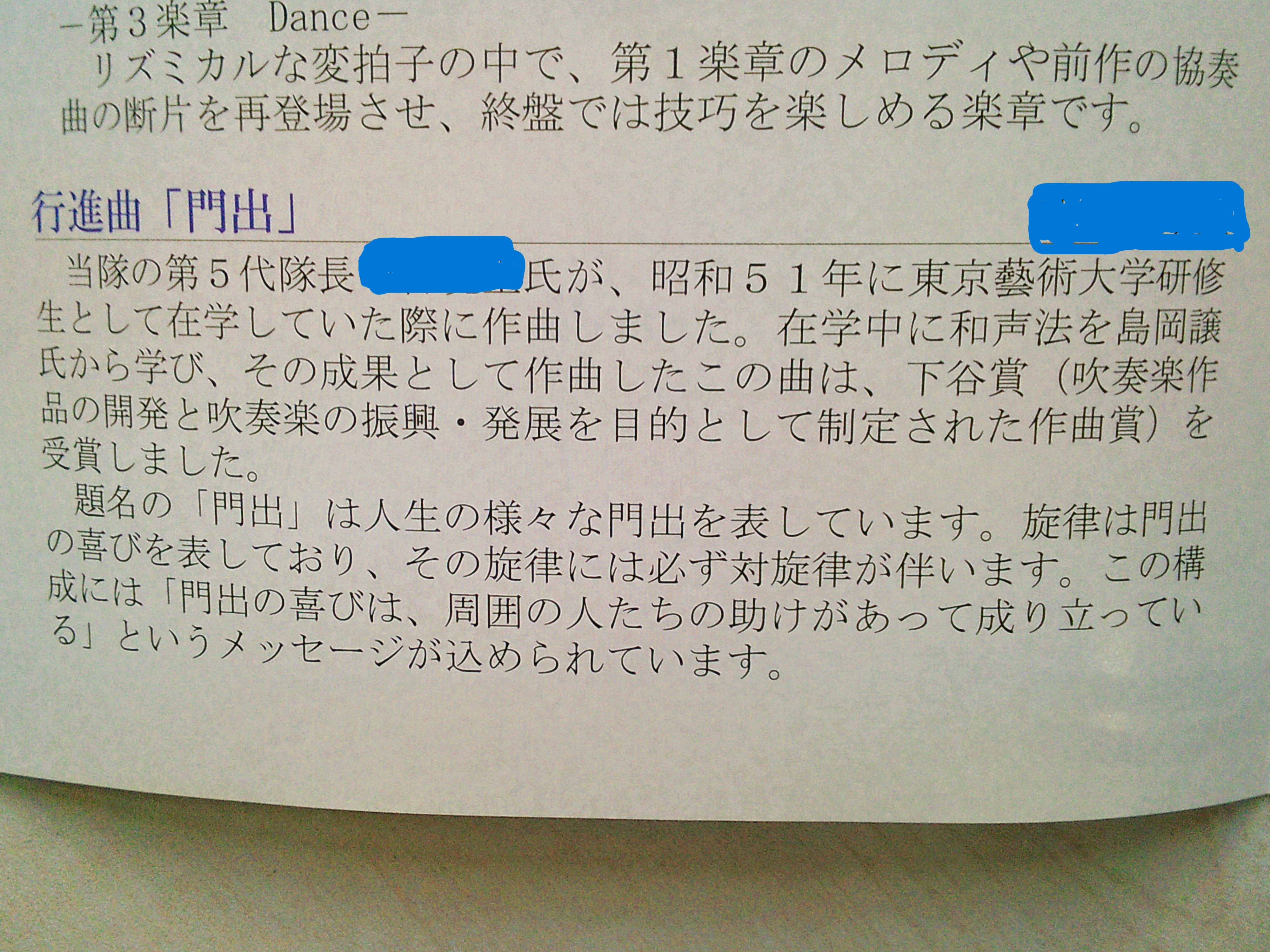 かつて活躍された音楽隊の演奏会で、ナントご自身が作曲した作品が演目に入っております!