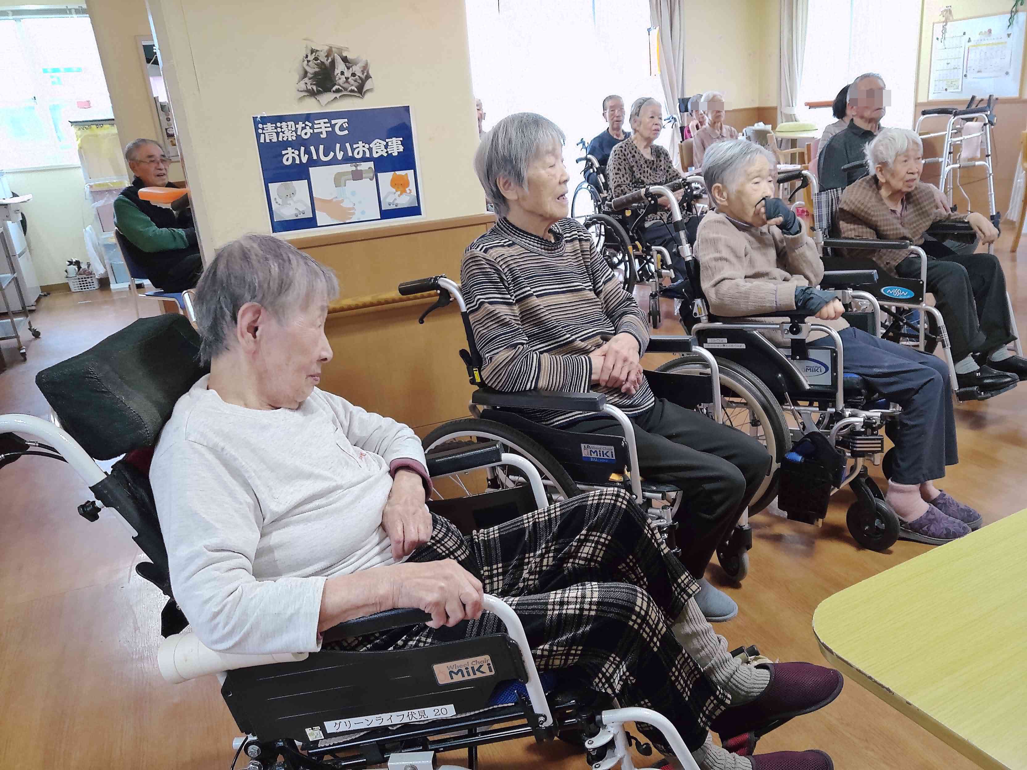 入居者様も今日は目をパッチリ開けて元気に身体を動かしていましたよ~