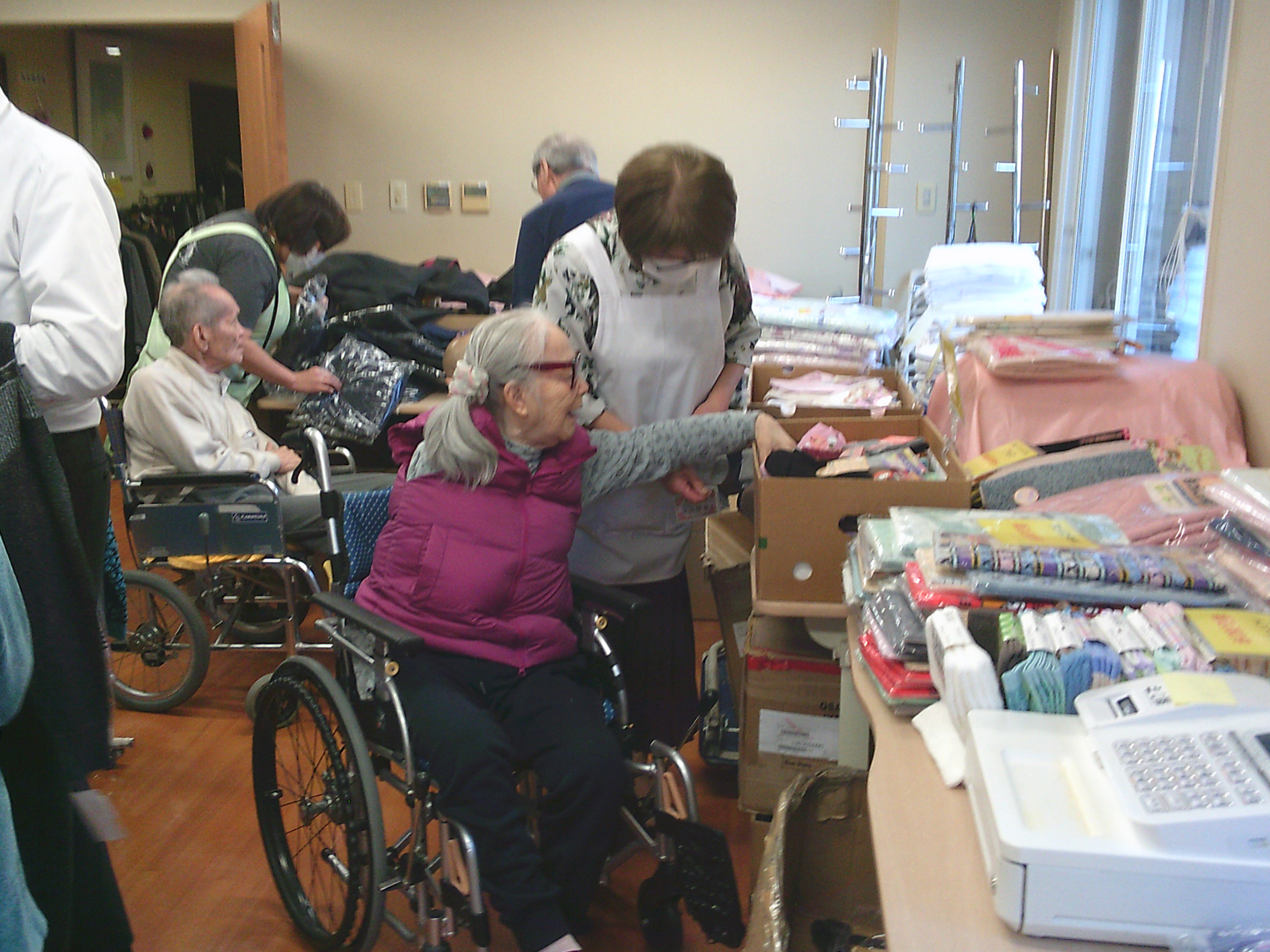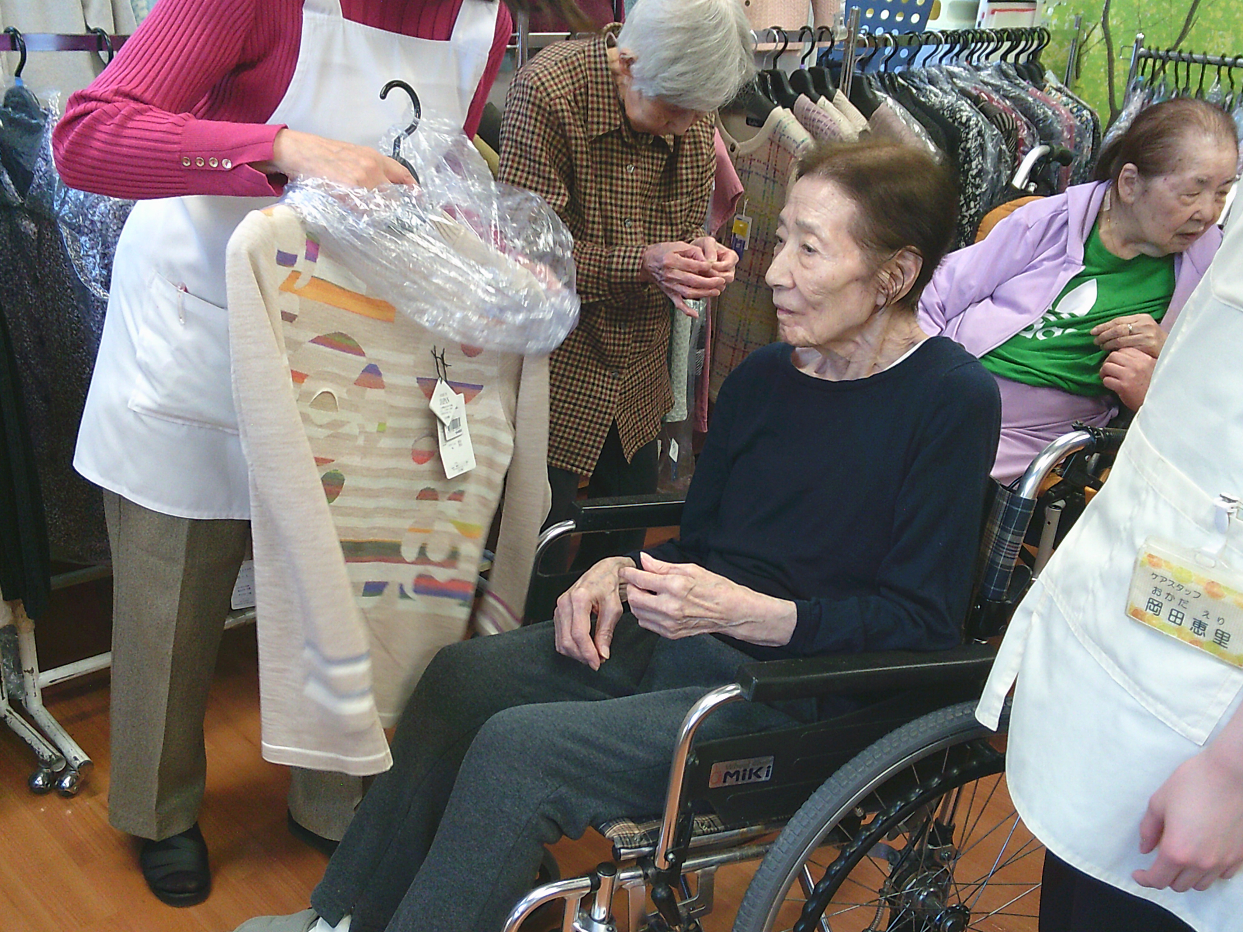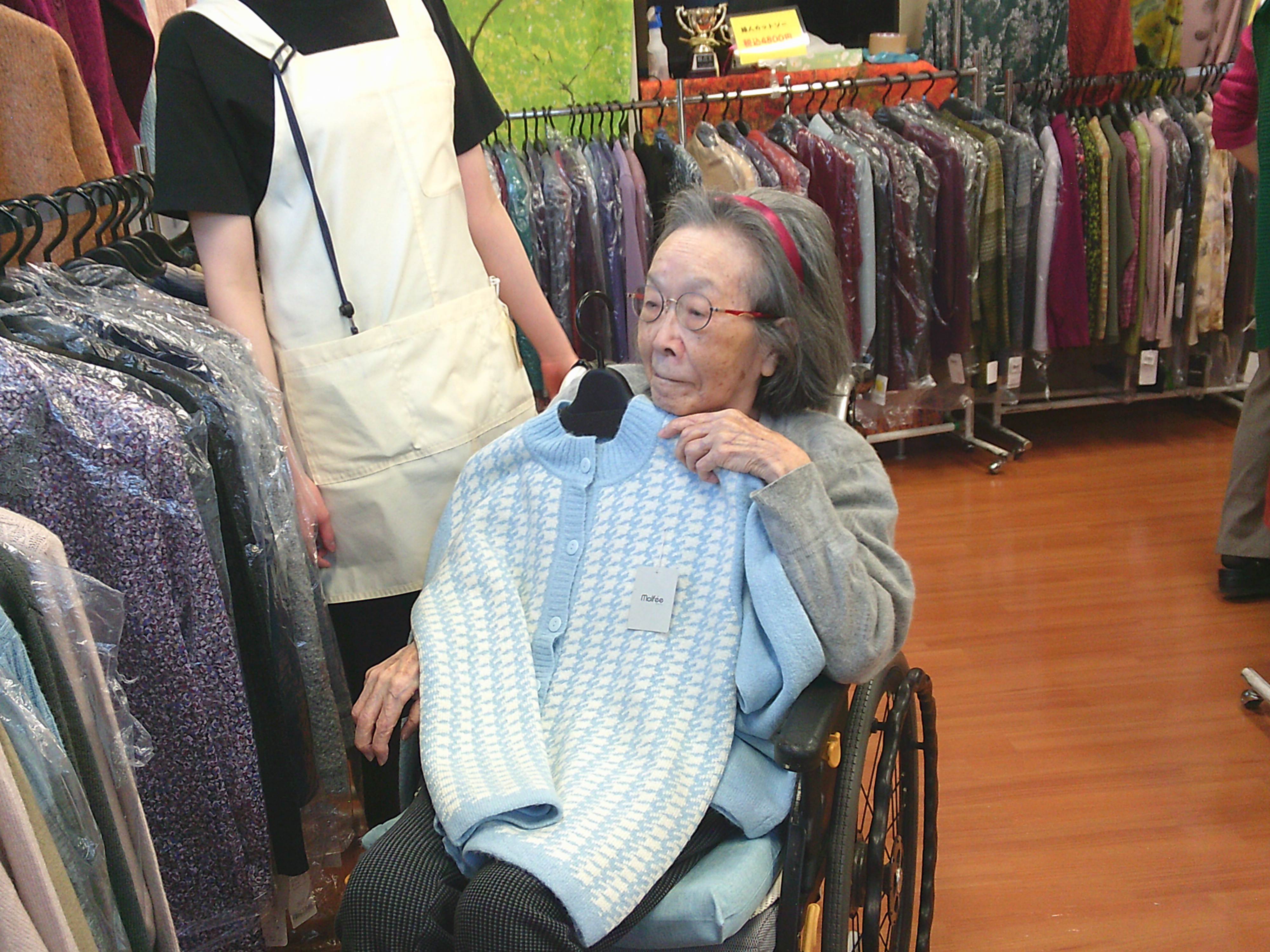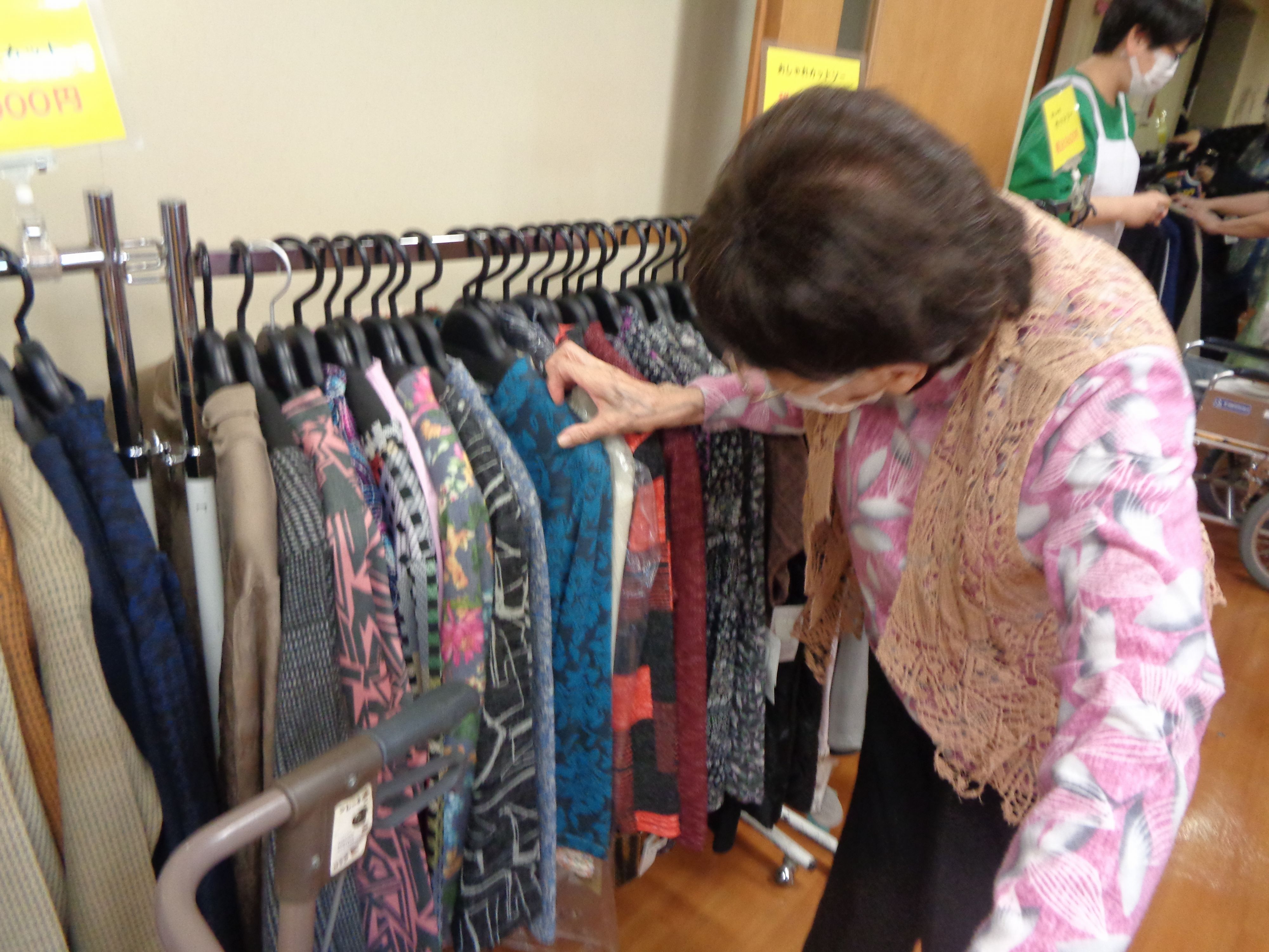 午後は、施設内で衣料品販売があり、ご入居者様は