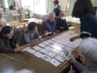 こんにちはデイサービスです。本日のレクレーションはカードゲームということでトランプの7並べと都道府県ゲームを行いました(^^♪ 7並べは久しぶりだった為、「ルール忘れちゃったなー」と仰る方も多かったのですが、職員がルール説明するとすぐに納得され楽しそうに参加されていました♪ 都道府県ゲームは漢字一文字が書かれているカードを選んでいただき都道府県名を言っていただくゲームです♪ こちらも大変盛り上がり「馬」「群」のカードを選ばれた方は大きな声で「群馬県!」と嬉しそうに答えておりました(^^♪ ワイワイとにぎやかな一時間となりました\(^_^)/