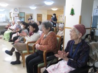こんにちは、デイサービスです。今日は南橘ウクレレ教室の方々が慰問演奏に来てくださいました(^^♪クリスマスコンサートとのことで、赤鼻のトナカイなどのクリスマスソング、みかんの花咲く丘、ふるさと、青い山脈など唱歌から歌謡曲まで皆さんが歌える曲をたくさん演奏してくださいました。「知っている曲ばかりで全部歌えたよ。」「クリスマスっぽくてよかった。」と嬉しい感想を聞かせてもらえました♪