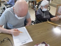 他にも言葉の階段の問題や間違い探しをご用意し、職員がジェスチャーをしながらヒントを出して楽しみながら問題に取り組まれていました!