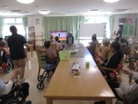 こんにちは、デイサービスです。今日の音楽レクは来月の夏祭りに向けての盆踊りの練習でした。鳴子を持つだんべぇ踊り、東京音頭、炭坑節の三種類の踊りの練習になりました。私たち職員も踊りをすっかり忘れてしまったので、YouTubeに頼って実施しました。「1年ぶりだから忘れちゃったよ」「だんべえ踊りは動きが激しくて大変だね」などの声も聞こえてきましたが、夏祭りに向けて皆さん一生懸命練習してくださいました(^^♪来月のデイサービス夏祭りが楽しみでーす☺
