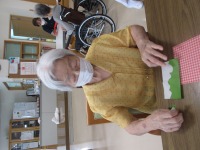 こんにちは、デイサービスです。今日のレクリエーションは8月のカレンダー制作でした。皆さんに折り紙でカキ氷を作っていただきました!皆様に好きな味のシロップになる折り紙を選んでいただきご自身で折っていただきました。夏らしいさわやかなカレンダーになりました。(^^♪