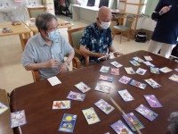 こんにちは、デイサービスです。今日はいろはカルタと上毛カルタを使ってカードゲームレクを行いました。2チームに分かれて各チーム皆様カードを獲得されていました(*^_^*) 上毛カルタでは県外の方には少し難しいようでしたが、譲り合ったりされる姿も見られました。いろはカルタでは読み札を読み上げた後、意味も読み上げると「そんな意味なんだね~!」とご利用者様から笑い声も聞こえてきました♪