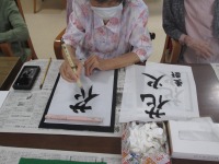 「初めて書くから緊張して書けなかった」「私も初めてだから大丈夫だよ」という声に対して、お習字を習っていた方から「大きく太く書くことを意識すれば自然といい文字が書けるよ」とアドバイスをしてくださいました。「いわれたとおりに書いたらすごくよくなった」と笑顔が見られました。(^^♪