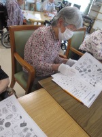 その次にプリントのトンチ文字や仲間外れを探そう、上下のイラストで片方にしかないものを探す問題に取り組まれご利用者の皆様、真剣に考えていました♪