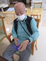 「昔作ったことがあるけど忘れちゃた」とおっしゃっていましたが、職員が作り方をお教えすると「そうだそうだ!」と思い出された様子で熱心に飾りを作って下さいました。短冊は「健康に過ごしたい」「父・母が元気でありますように」「可愛い犬や猫に会いたい」というものから「全部欲しいです」というような、ちょっとクスっとしてしまうものまでありました。(^O^)