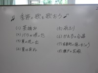 本日は季節の音楽レクを行いました。選曲は『茶摘み』『バラが咲いた』『夏の思い出』『夏は来ぬ』『雨ふり』『かえるの合唱』『有楽町で逢いましょう』『瀬戸の花嫁』