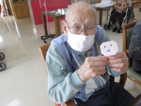 こんにちは、デイサービスです。今日は回想法レクということで昭和クイズを行いました。「大阪万博のシンボルである建造物の名前は何でしょう。」(正解は太陽の塔です。)「アメリカでも大ヒットした坂本九さんの名曲は何でしょう。」(正解は上を向いて歩こうです。)懐かしいクイズに答えてもらい、回答後には「大阪万博は行ったよ。」など昭和の思い出話に花が咲きました(*^_^*)