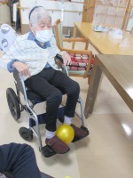 ボールを両手で持って体をひねったり、太腿の間に挟んで足を浮かしたりと私たちがやっても大変な動作がありましたが、ご利用者の皆様真剣に取り組んでいました!