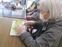 こんにちは、デイサービスです。今日の料理教室はお好み焼きを作りました。キャベツを刻み、粉、卵、水と混ぜて干しエビを入れたらホットプレートで焼きます。大きめに焼いたのでひっくり返すのにフライ返しを2本使って勢いをつけてひっくり返します(^_^)仕上げにソースと鰹節とマヨネーズをのせて完成です。美味しかったと大好評でした♪