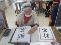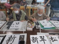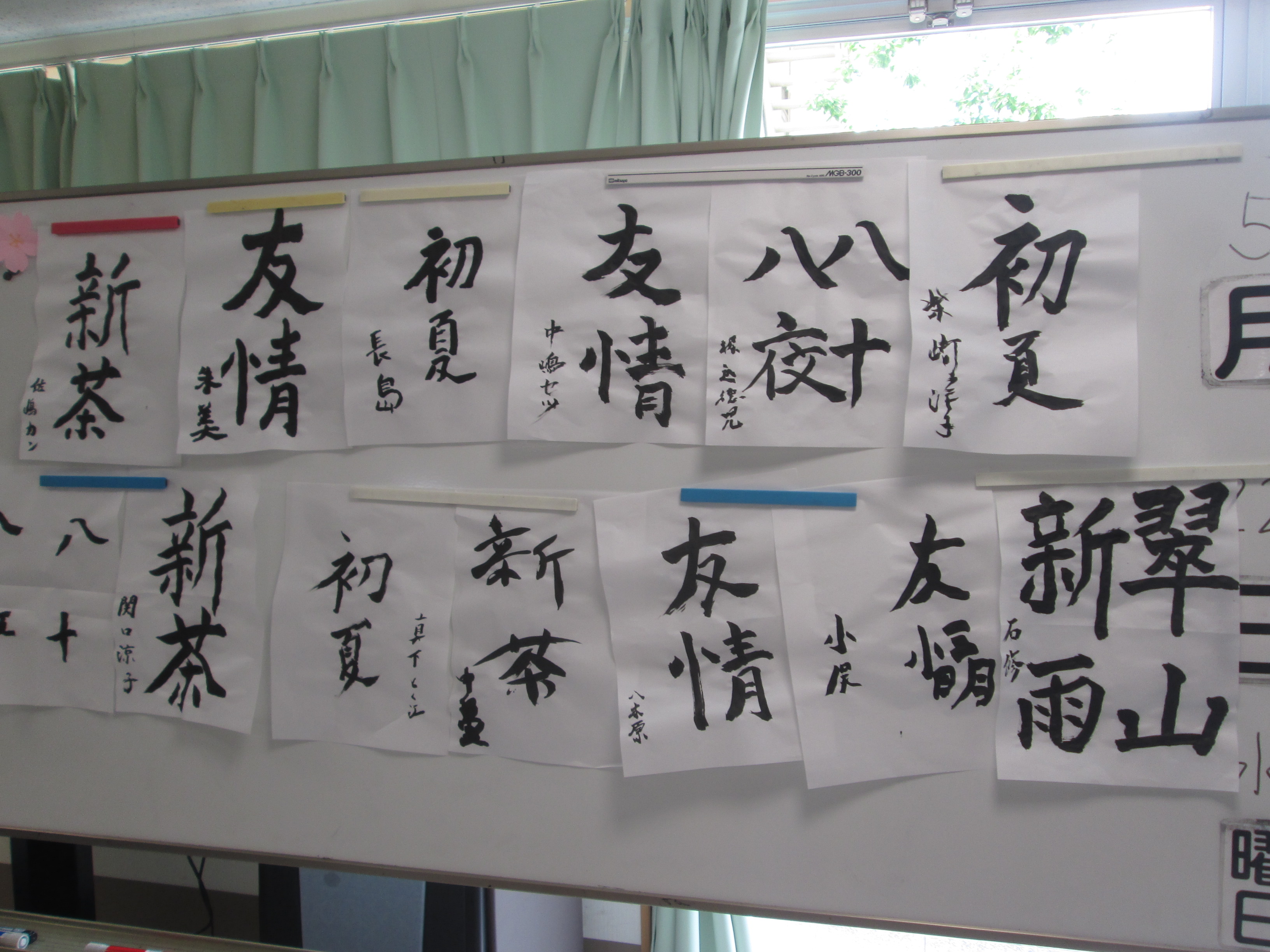 こんにちは。本日のデイサービスは書道教室でした。「八十八夜」「新茶」「初夏」「友情」をお手本に書きました。みなさま熱心に取り組まれており、納得のいく文字がかけるまで何度も書き直しをされていました。「納得できるものができなかったので今日は提出しない」と言われる方もいらっしゃり、皆様の真剣度が伝わるかと思います。
