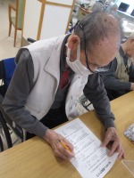 今日は回想クイズやなつかし昭和クイズのプリントに取り組んでいただきました。「鉄のコマの名前は?」や「昭和元年は何日あった?」「昭和40年、最高視聴率50%を超える人気スポーツ番組は?」など様々な問題に取り組まれて答え合わせ中には笑い声が聞こえ皆様楽しんで取り組まれていました(*^_^*)