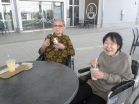 本日も道の駅まえばし赤城へ外出してきました。道の駅をぐるっと散策して、ご利用者様のご希望で直売所の春キャベツを買ったり、店内を自由に見てまわって頂きました!散策した後は「焼きまんじゅうソフト」を皆さんで召し上がり、「美味しいね~」「何年生まれですか?」「同じ辰年だね!」と会話を楽しまれていました(*^_^*)