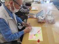 今日はちぎり絵を行いました♪ 100均に売っていたシールちぎり絵に挑戦しました!気球、ネコ、チューリップ、チョウチョなどの下絵にグラデーションになったマスキング素材のシールを貼っていくというもので、ご利用者の皆様集中して取り組まれていました。お隣さまの様子を見て「綺麗だね~」とお話しされてるのも聞こえてきました(*^_^*)