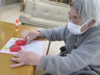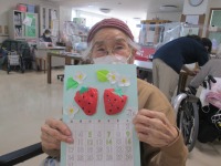 こんにちは、デイサービスです。今日も昨日に引き続き3月のカレンダー制作を行いました。この季節にピッタリのいちごのデザインです。おはながみを丸めていちごを作り、いちごの花と葉っぱは折り紙で作ります。ご利用者様方は手先が器用なのであっという間に完成させてしまいます(*^_^*)後半はカレンダー部分に色鉛筆で色付けをしてもらいました。土日に色塗りされる方、デイサービスご利用日に色塗りされる方、全体的にカラフルに色塗りされる方と様々です。ご自分だけのオリジナルカレンダーの完成に皆様とても嬉しそうな表情を見せてくださいました(^O^)