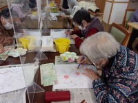 こんにちは、デイサービスです。今日は梅の花の下絵を使った水彩画教室を行いました。皆さん集中して取り組んでくださっていましたが、完成が見えてくるとご自分の作品と他の方の作品を見比べて、「〇〇さんのは木の質感が良く出ていていいね。」「〇〇さんは梅の花のピンク色が鮮やかだね。」等とお互いの作品を褒め合っていらっしゃいました(*^_^*)完成作品はデイルームの水彩画コーナーにしばらく飾らせてもらう予定です♪