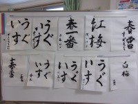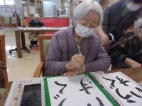 今日は書道教室を行いました。用意したお手本は2月に関連する「紅梅」「白梅」「うぐいす」「春一番」「春雷」です。皆様すぐに集中して取り組まれていました(*^_^*) 完成した物を見ながら「これは良く出来た」と満足げにおっしゃる姿も見られました。皆様毎回とても上手で職員を驚かせています!