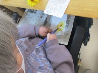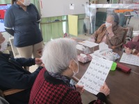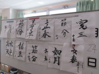 一月の終わりということで二月にちなんだ「立春」「如月」「節分」なども文字をお手本にしました。「ご自宅でお蕎麦屋さんをしていた方がいらっしゃり、「かも南ばん 九〇〇円」「かけそば 五〇〇円」などなど、お店のメニュー風に書いてくださった方がおり、「さすがですね!」「もっと書いて欲しい」と盛り上がりました。(*^_^*)
