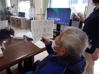また歌唱曲を解説しながら、ご利用者の皆さんと歌って楽しい時間を過ごさせて頂きました。「証城寺の狸囃子」「あめふり」「冬景色」「朧月夜」「丘を越えて」「二人は若い」「湖畔の宿」「蘇州夜曲」と様々な曲を聞き、曲の内容によって色々なお話を伺いました。ご主人、奥様、お互いをなんと呼んでいましたか?と質問すると恥ずかしがる様子も見られ盛り上がっていました♪