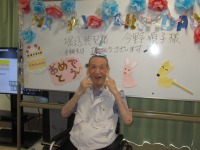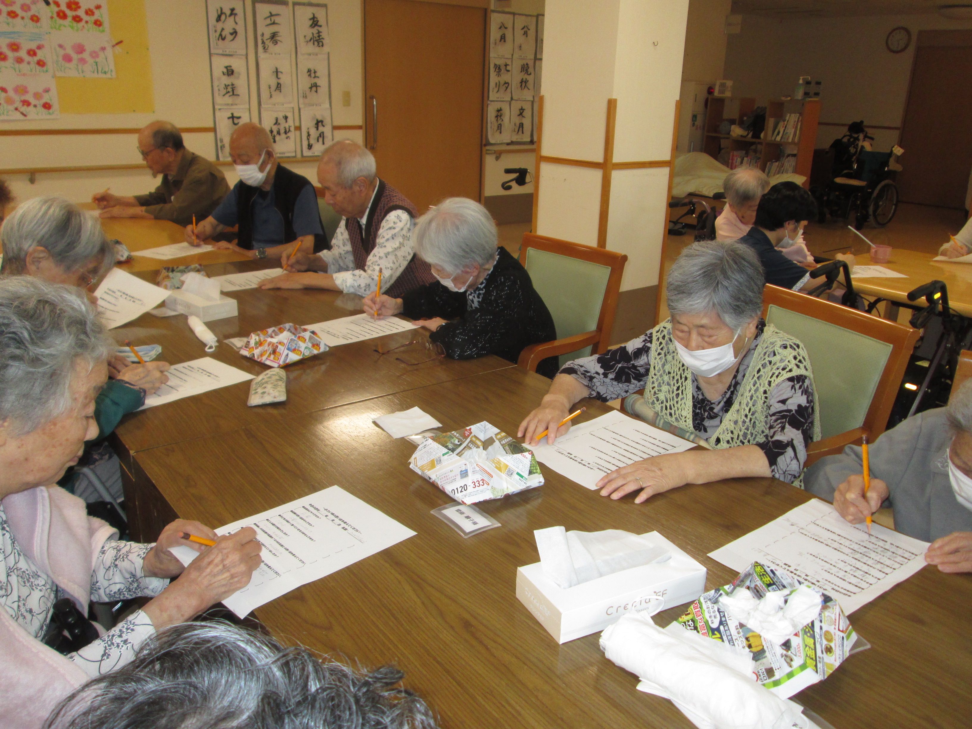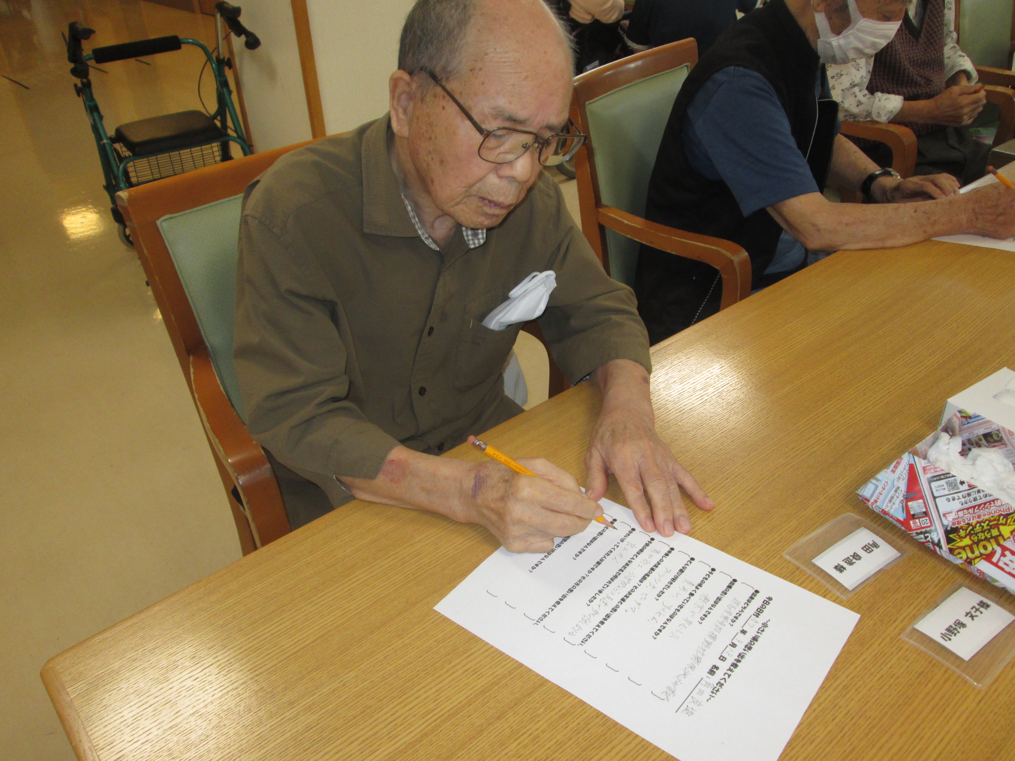 こんにちはデイサービスです。本日のレクは前半はプリントを使った脳トレを行い、後半は9月のお誕生会を行いました♪ 脳トレはみなさまお得意のようですが、今日は少し難易度の高いトンチ文字や間違い探しだったので、「難しくて分からないなー」「これどーゆー意味?」と苦戦される方が多かったようです。周りの方や職員と相談しながら取り組まれていらっしゃいました(^^♪ 後半はお待ちかねのお誕生会です♪ 本日の主役のH様はとても明るく穏やかな方でバースデー用の飾りを自ら頭につけてくださり、にこにこ笑顔で嬉しそうにされてました。みんなで「おめでとうございます!」と声をかけバースデーカードをお渡しすると「ありがとう♪」と少しウルウルされてました。その後は美味しそうなケーキを皆さんと一緒に召し上がりました♪