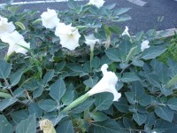 玄関わきのエンゼルストランペットが今年も開花しています。