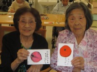 こんにちはデイサービスです。今日は9月のカレンダー〔梨狩りをしている女の子〕の下絵を使って水彩画に取り組んでいただきました。『服の色は何色にしようかな?』『女の子だから赤だよね?』『髪の毛は何色だい?』と色々考えながら色を塗っていました(^^♪ 同じ下絵を使っていても利用者様それぞれの色使いがあり完成作品は違うものが出来上がりました。笑い声