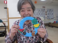 こんにちは、デイサービスです。今日は夏のリース作りを行いました。紙皿をくり抜いておはながみを巻きつけたものがリースとなっています。ご利用者様には折り紙で丸ごとスイカとカットしたスイカを作ってもらいました。職員が事前に用意しておいた折り紙のクワガタとスイカをリースのお好きな場所に配置して完成です。「かわいいのができたよ。」ととても喜んでいただけました。デイルームの壁面が寂しかったので少しの間、壁面に飾らせてもらうことになりました(*^-^*)