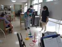こんにちは、デイサービスです。今日はご利用者様の中でも得意な方が多い輪投げレクを行いました。点数の書いてある目標に輪を投げてもらいますが、皆さん高得点を狙って気合が入ります(@_@)お一人10回投げてもらい、合計得点はご利用者様に計算していただくので脳トレにもなります。笑い声あふれる楽しい時間が過ごせました。