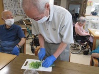 こんにちはデイサービスです。今日は料理教室ということで大好評の「大根もち」を作りました(^^♪ 材料は大根(おろし)・ネギ・桜エビ・片栗粉・ごま油と至ってシンプルですが一度食べたら癖になること間違いなしのおやつです♪ みなさまには大根をおろす方・ネギを細かく切る方・生地を焼く方とそれぞれ分かれて作業をしていただきました。本日の利用者様の中に元お蕎麦屋さんがいらっしゃり、その方はすべての作業を手際よくされておりました! ネギを細かく切る様子は見事な物でした(^^♪ 大根おろしを軽く絞り具材を入れてごま油で両面をこんがり焼きて出来上がりです。みなさまアツアツの「大根もち」を召し上がり「モチモチしてて美味しいよ」「大根でこんな美味しいおやつができるなんてビックリだね」と笑顔で仰っていました。本日の料理教室も大成功でした\(^_^)/