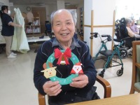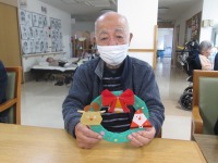 こんにちはデイサービスです。本日は昨日に続きクリスマスリース作りを行いました(^^♪ 紙皿の真ん中をくり抜いたものに緑色のお花紙を巻き付けたものを土台にして、みなさまに折り紙でサンタクロースとトナカイを作って頂き、可愛らしいリボンや星型のシールなどで飾りつけていただき完成です(^^♪ 折り紙が苦手な方も「これなら簡単にできるし可愛いからいいわね」と大変嬉しそうに仰ってました(^^♪ 二日間に渡って行われたクリスマス制作みなさま大変喜ばれたご様子でした♪