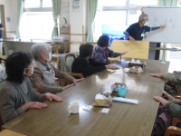 こんにちはデイサービスです。今日は機能訓練士のY先生による月に一回の機能訓練レクを行いました。毎回違ったメニューを行いますが本日はリズム体操とゆうことで、まず初めに両手と使ってグーチョキパー体操を行いました(^^♪ 左手はグーチョキパーの動きで右手は12.3を数えていただきました。両手で違った動きをする脳トレの体操なのでみなさま苦戦されていました。次にテーブルを太鼓に見立ててリズム良く叩く体操を行いました。これもリズムよく腕を動かす為、みなさま「難しいよー」と仰る方が多く見られました。中には軽快なリズムでテンポ良く叩かれる方もおり、デイルームは大変にぎやかでした(^^♪ 本日もみなさま楽しそうに参加されていました♪ また来月も楽しみです\(^_^)/