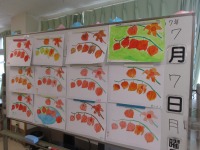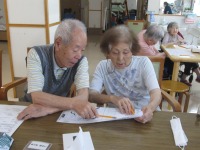 こんにちはデイサービスです。本日のレクはプリントを使った脳トレを行いました。この時期らしい七夕の間違い探しや、トンチ文字や難問漢字に取り組んでいただきました。間違い探しはみなさま得意のようでしたが、トンチ文字はかなり苦戦されていた様でお隣さんと相談したり、職員と一緒に考えていました。例えば、「虫」という漢字が横たわっているこの文字は何?正解は「てんとう虫」。ひらがなの「お」の周りに数字の3が円を描くように並んでるこれは何? 正解は「お巡りさん」と言うようにトンチを使ったユニークな問題がたくさんありましたが、「難しくて分からないなー」と仰りながらもみなさま集中して取り組まれてました。しっかり頭を使った後のおやつは格別のご様子でした(^^♪