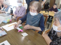 こんにちはデイサービスです。本日はゲームレクということで職員が発案した「いつ・どこで・誰が・何をした」ゲームをしました(^^♪ 4色の折り紙を皆様に配り、ピンクには日時(いつ)黄色には場所(どこで)、緑には人物や動物(誰が)、青には行動(何をした)を好きなように書いていただき一度回収してシャッフルした後にお一人ずつ4色の折り紙を選び読んでいただきました。いくつかご紹介します(^^♪ 「3/3家で職員が盆踊りをした」「花火大会の日、海で私がフラダンスした」「昨日、公園で織田信長が飲んだくれた」など思わずクスッと笑えるような楽しい文章がたくさん出来てみなさま大爆笑されていました。利用者様からは「面白いからまた今度やって」と嬉しいご意見もいただきました♪ また次回もお楽しみにー(*^^)v